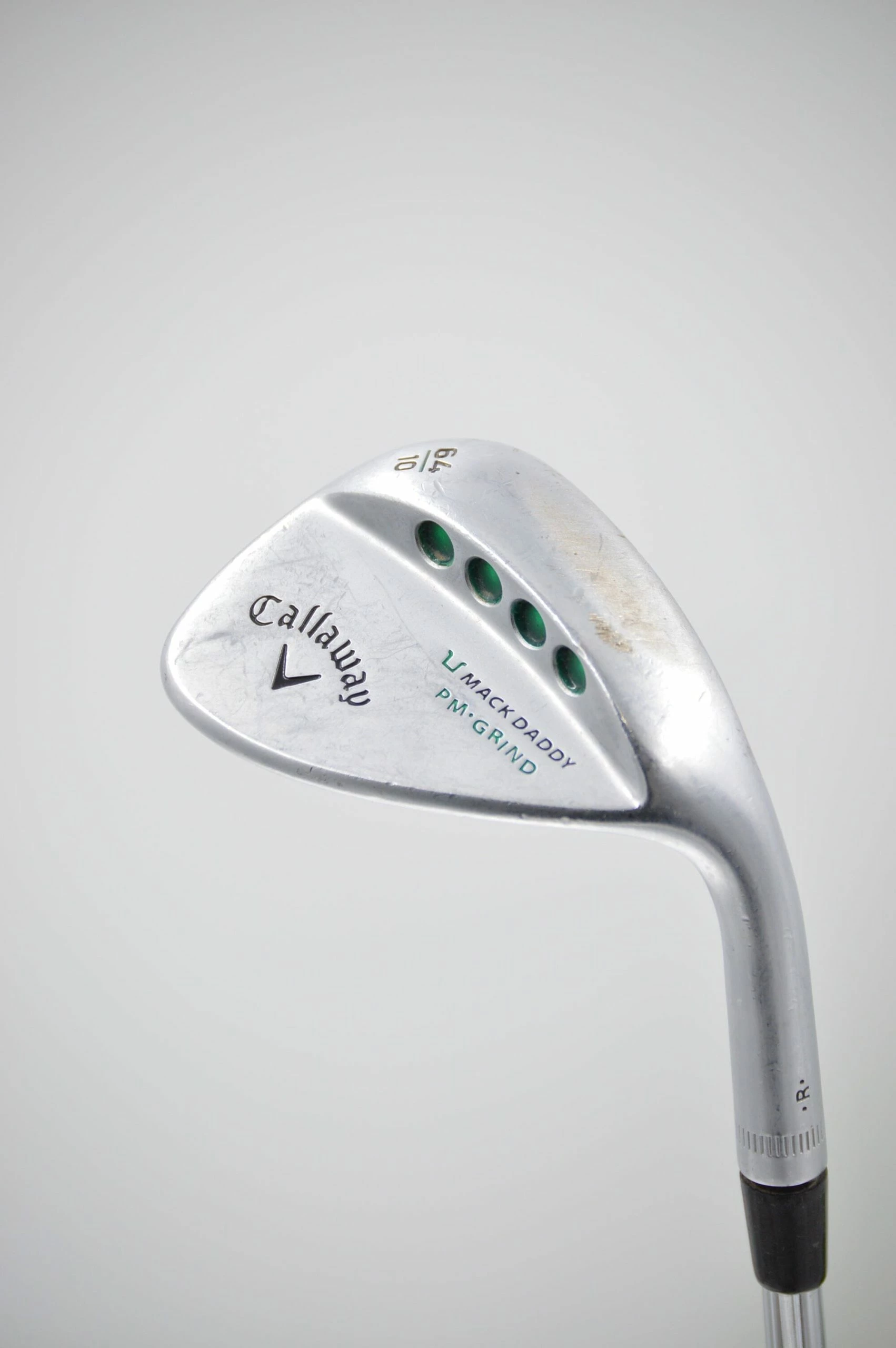 Wedge is in fair condition, with some wear to the head and face. Loft is 64 degrees with 10 degrees of bounce. Shaft is FST KBS Tour-V in Wedge Flex with a Lamkin Crossline Midsize Grip.