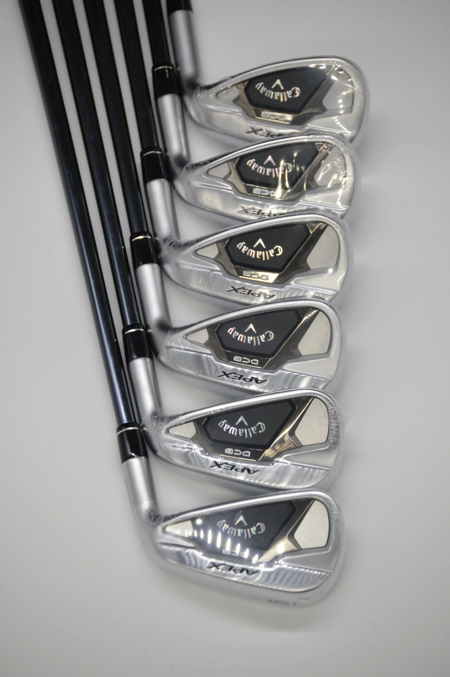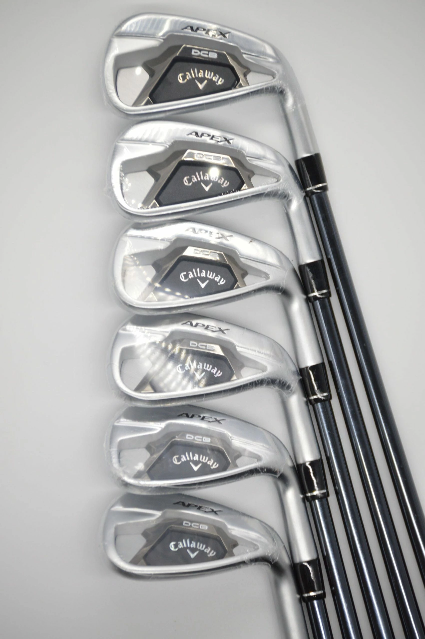 Set includes 6-AW irons. Irons are in brand new condition with plastic wrappers still on the irons. Shafts are graphite UST Mamiya Recoil Dart in R-Flex with Lamkin Callaway standard grips. Item #: 6522