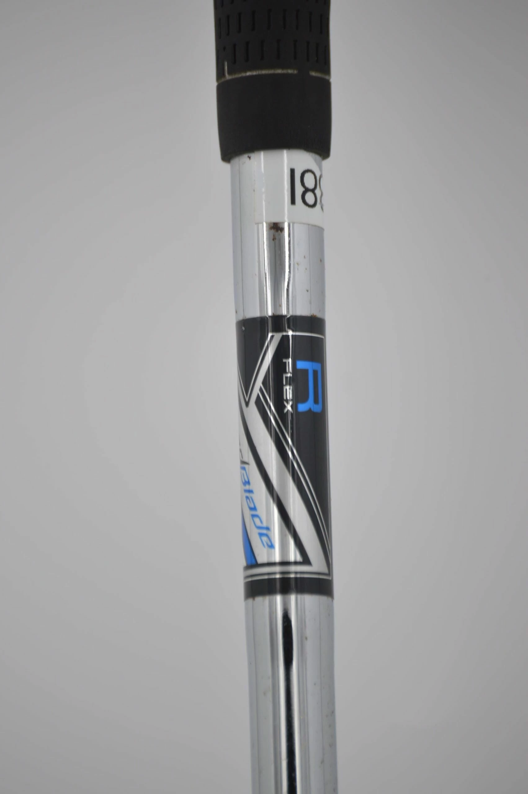 Iron is in good condition with light wear on the head and face. Shaft is a steel stock Speedblade 85g in R flex with a stock TaylorMade grip.