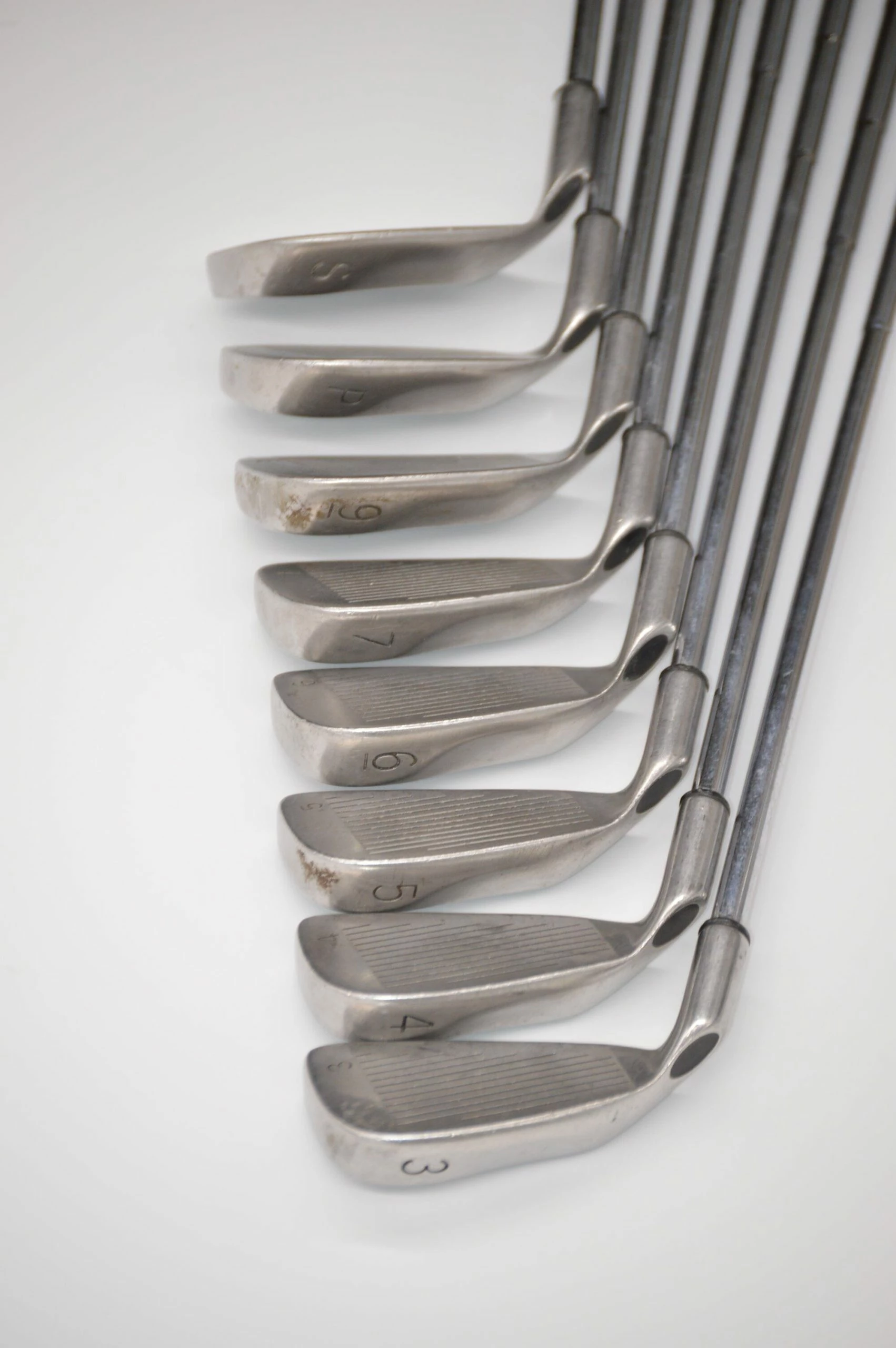 Iron set is in good condition with normal wear to the heads and faces. Shafts are stock in R Flex with Lamkin oversized Perma Wraps.