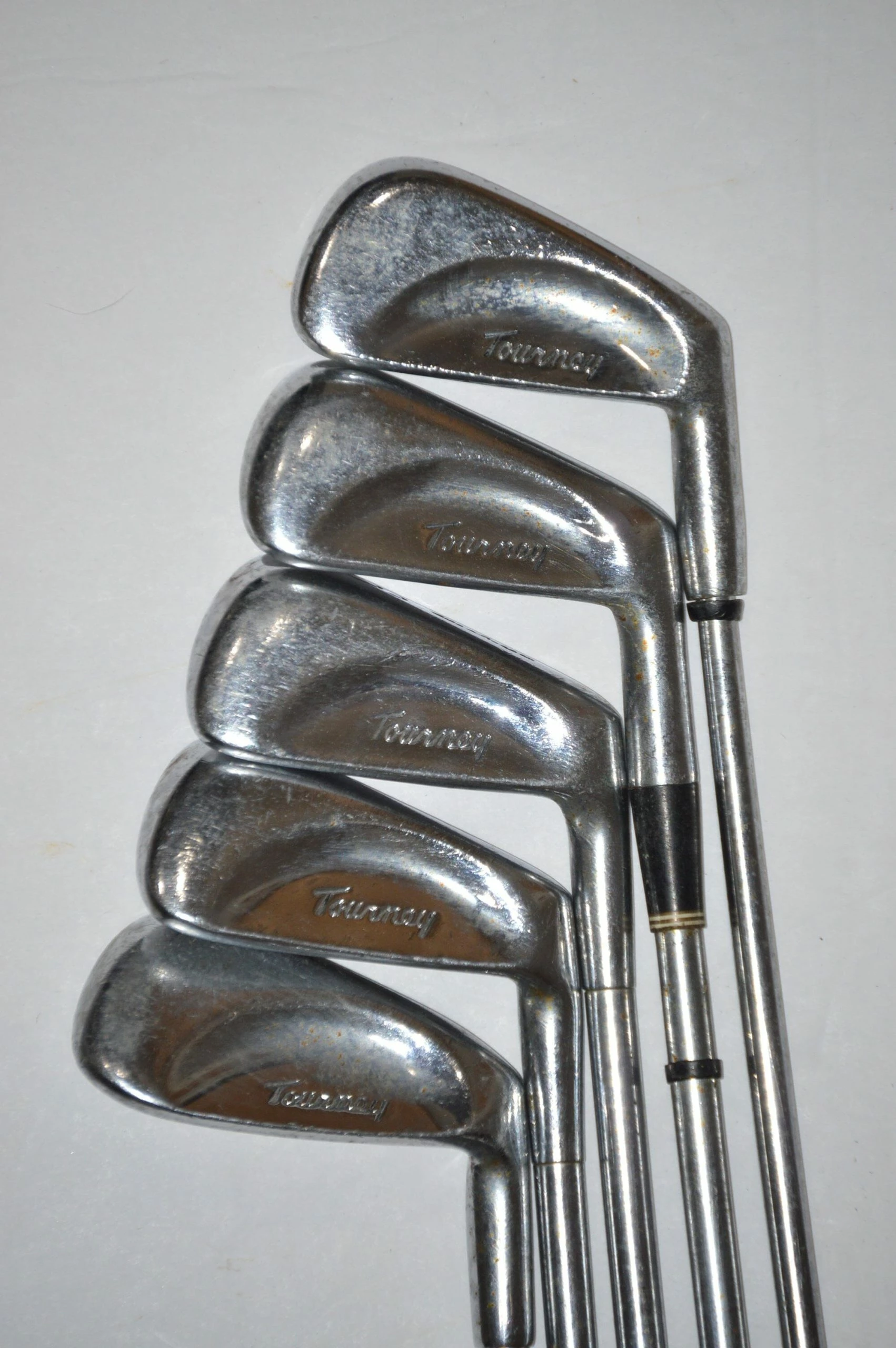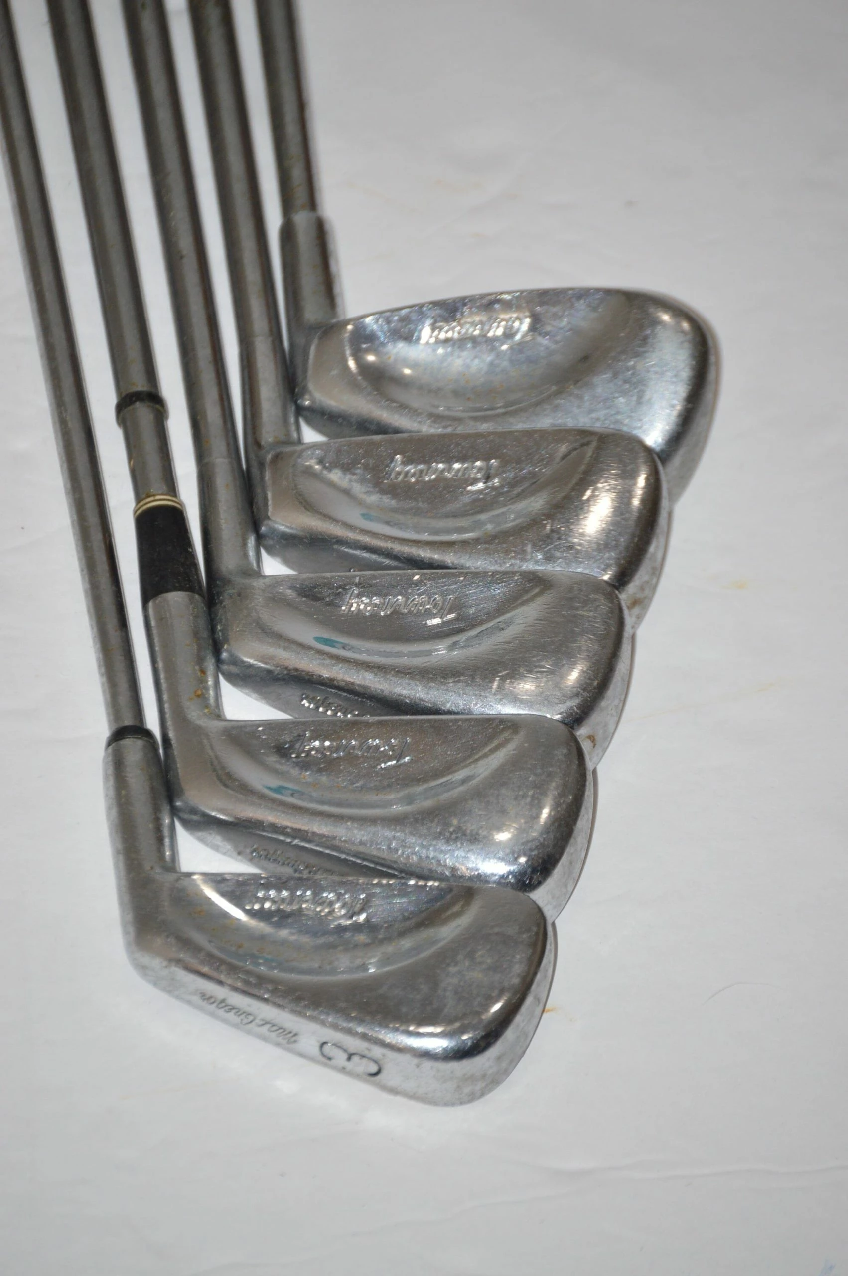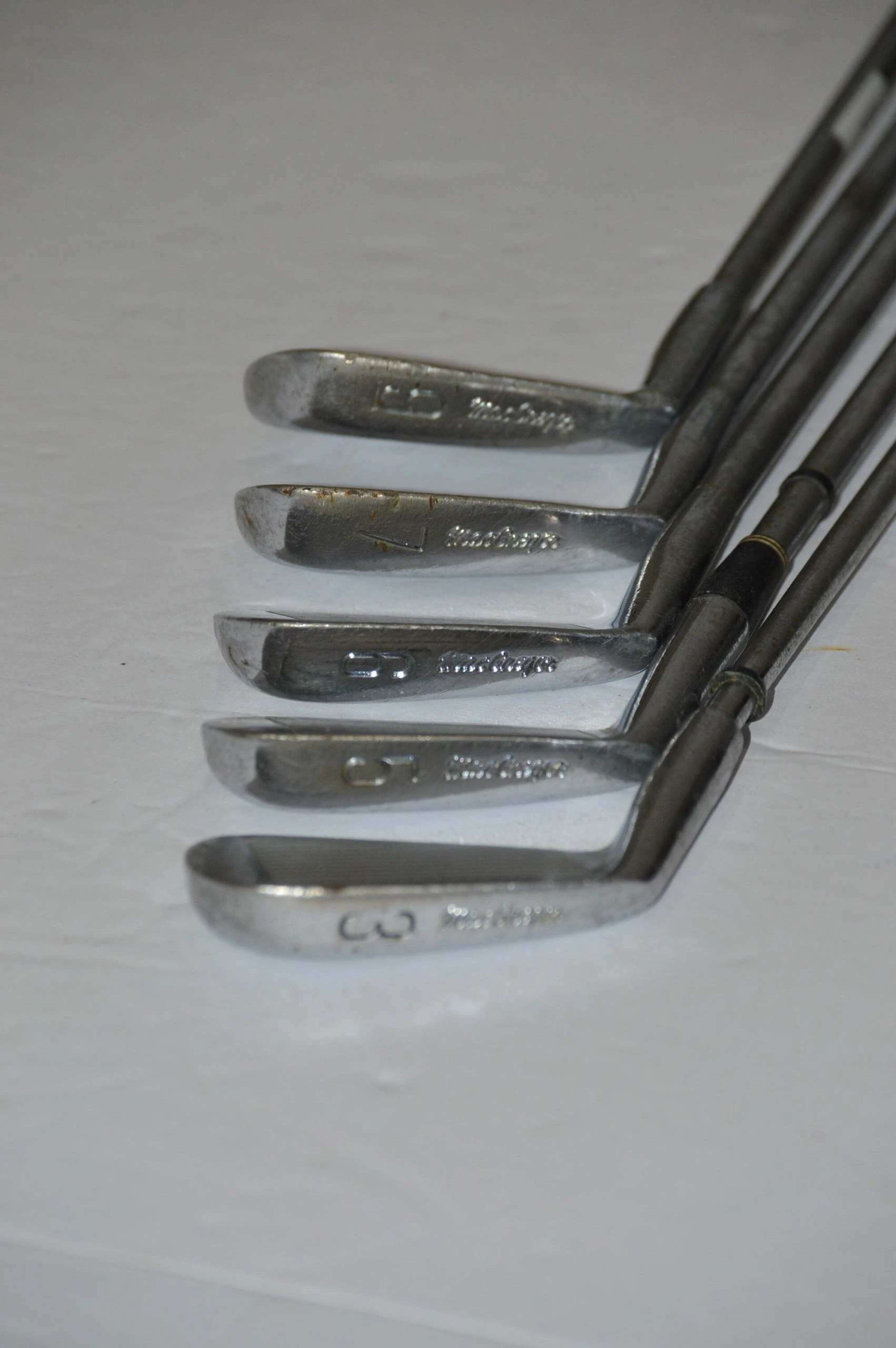 Iron Set includes 3, 5-7, 9. Irons are in fair condition with some cosmetic wear on head and face. Shafts are Mac-Gregor Pro-Pel Flexible with MacGregor grips. Clubs are standard in size.
